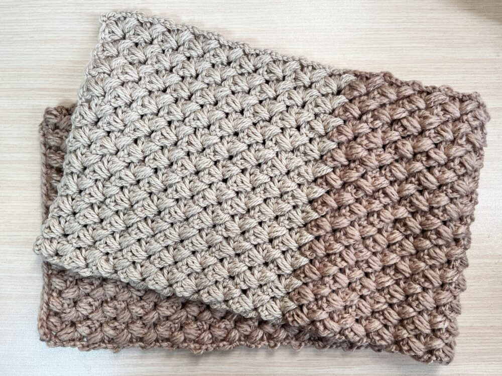 サイズやデザインを自由自在できるネックウォーマーを編む【自由自在なネックウォーマー・その1】 公開日:2026年3月17日 ダイソーの手芸糸マフラー・手袋 今は春、冬に向けてネックウォーマーを編む過程を季節外れに紹介します。8号と10号サイズのかぎ針でザクザク編むと思いきや… 続きを読む